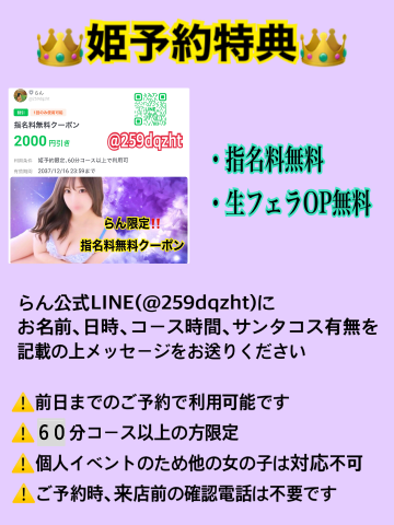 13(金)以降は姫予約の方限定で28(土)まで