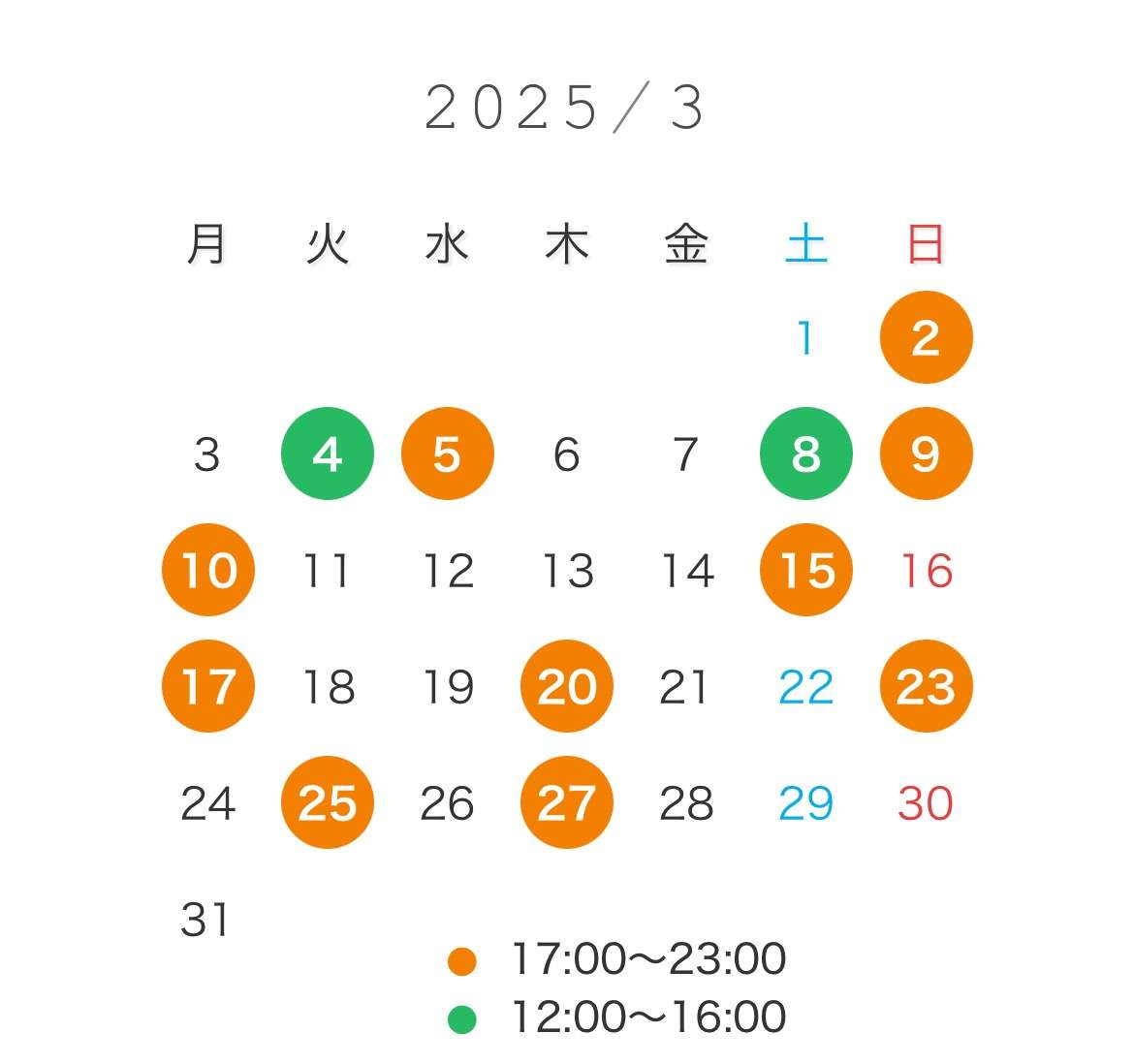 本日は17:00〜23:00まで!