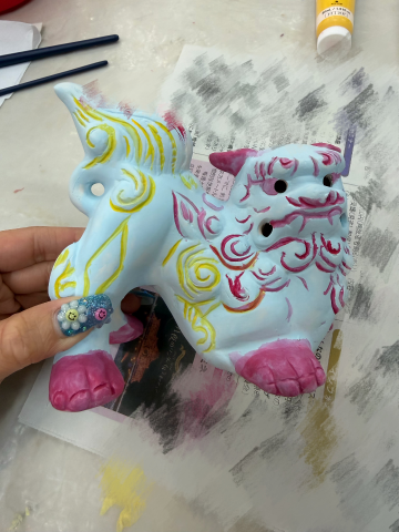 実は沖縄でシーサーの絵付け体験をしてきまして、ゆうは水色?でシナモンくんをイメージしてみました〜?