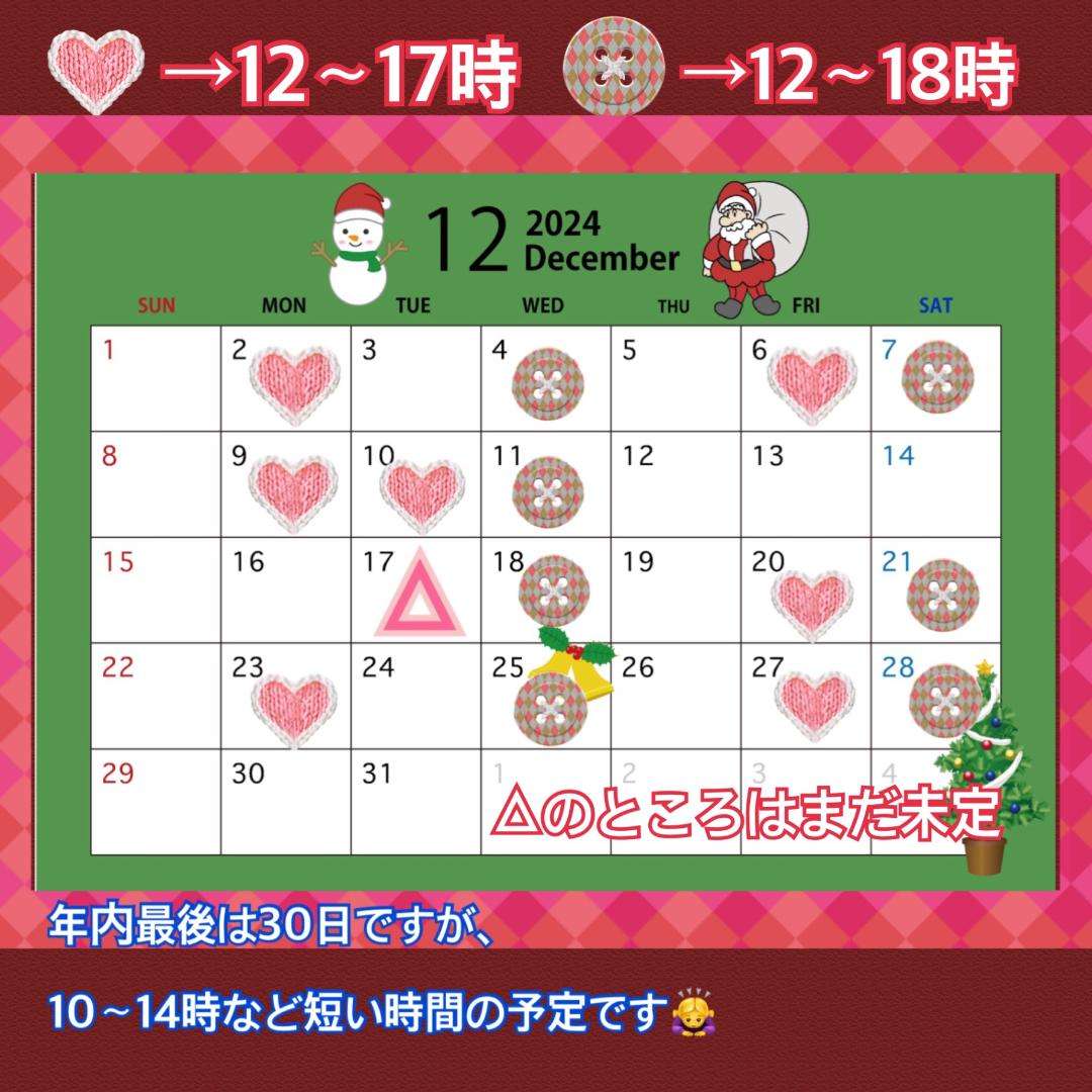 少し早いけど、12月の出勤日の予定です?
