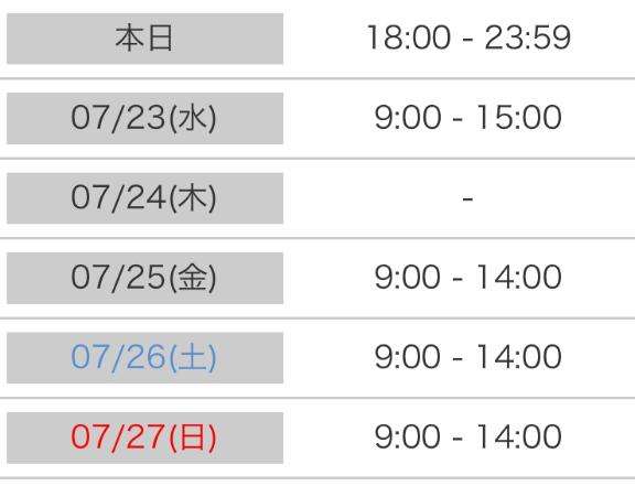 9時~24時 年中無休