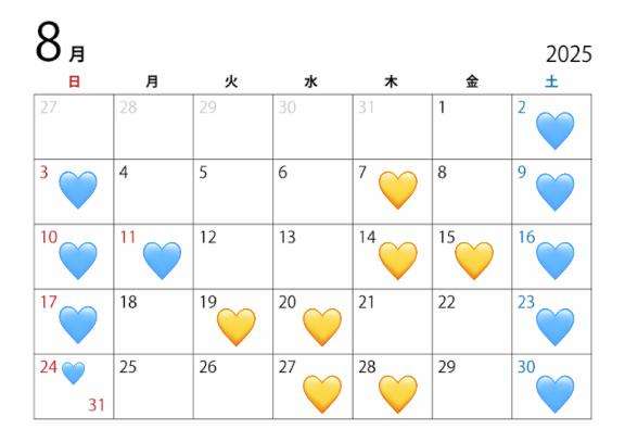 8月予定は