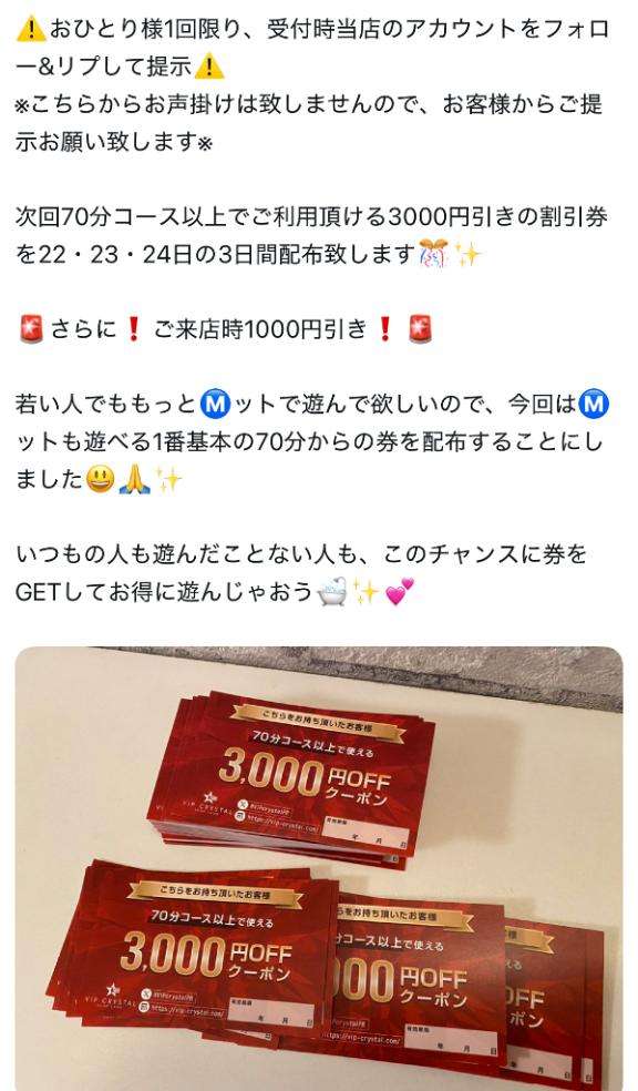 ??70分コース以上で使える3000円OFF券