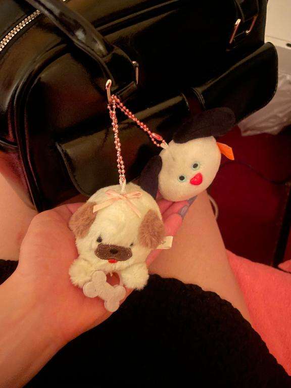 バックにガチャガチャ付けてるんだけど、この犬のやつめっちゃ可愛くて、骨引っ張るとぶるぶる震えるから見に来て??笑笑笑