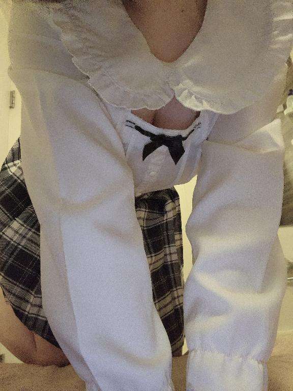 今日の衣装は、白いブラウスに黒系のチェックスカートで清楚系(?)にしてみたよ〜