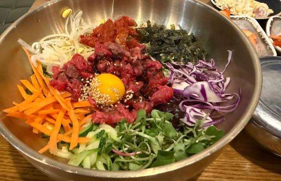 写真は今日韓国旅行来てて食べたユッケビビンバ