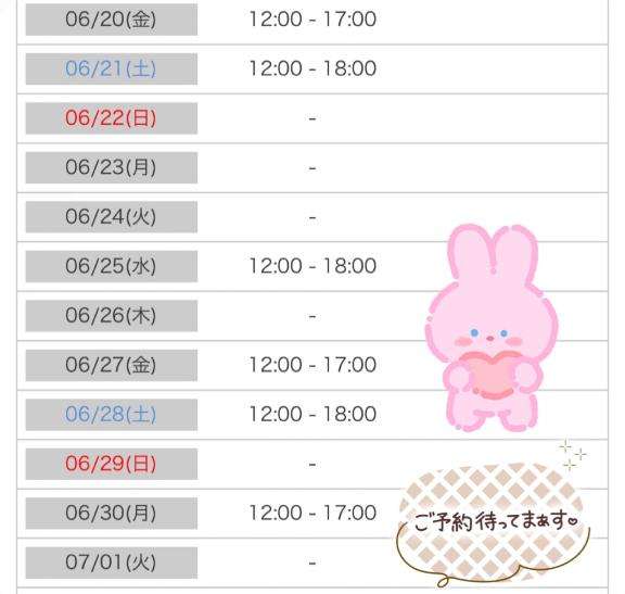 土曜日はまだ空きがあるのでお待ちしてます?